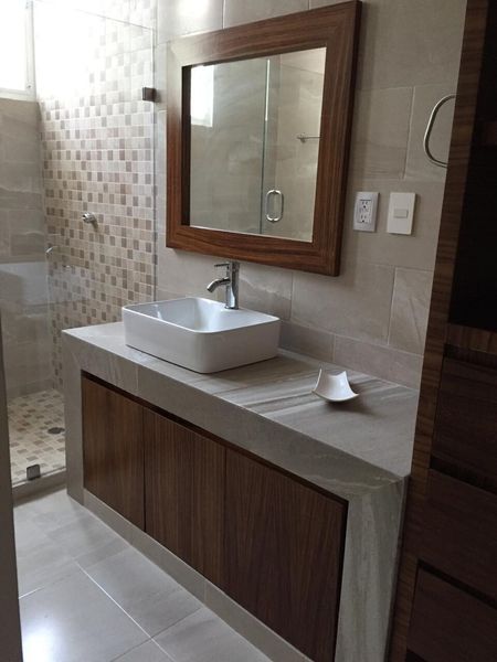 * Pisos y azulejos en muros completos en area reagadera y baños, de la marca INTERCERAMIC